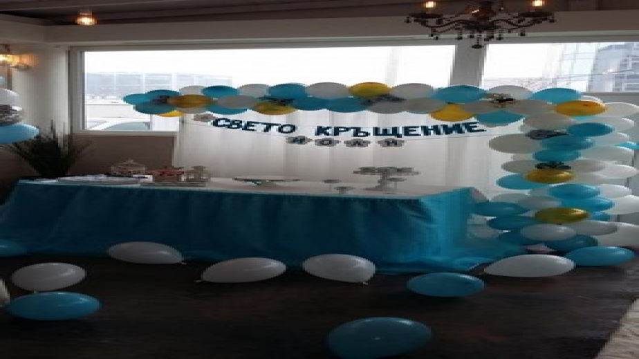 След ритуала в църквата всички присъстващи се преместили в ресторанта, където останали смаяни от специалната украса. Синоптичката не останала по-назад от другите светски майки, които в последно време се надпреварват коя ще изпъкне пред другата с повече балони за празниците на детето си, и се обърнала за декорацията към специализирана агенция. В чест на Йоан имало надписи, кексчета и бисквити с името му, както и десетки балони и гирлянди. За важния повод Банова заложила на бяла дантелена рокля без ръкав, нищо че тържеството се състояло при минусови температури.
