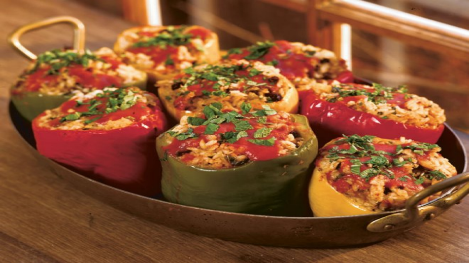 Почистените чушки се поръсват със сол и лимонов сок отвътре и се оставят да престоят малко.Рибките се надробяват,прибавят се сварения в подсолена вода ориз,сосът от консервата,ситно нарязано твърдо сварено яйце,сол и черен пипер.С тази смес се пълнят чушките и върху плънката се слага ситно нарязан магданоз.Чушките се подреждат в малка тавичка с предварително загрято олио,малко гореща вода и се пекат около 40 мин.