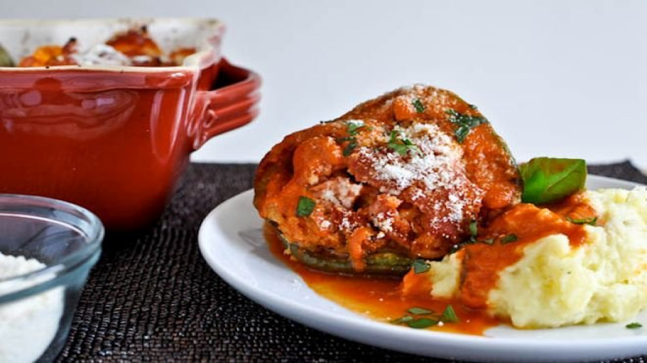 Запържете в олио ситно нарязания лук, настъргания морков, добавете месото и го задушете добре. След това добавете и ориза. Запържете го леко, а после подправете на вкус с подправките. Напълнете чушките. Подредете ги в тавичка, отгоре залейте с доматения сос, добавете чаша вода, дафиновите листа, малко олио и покрийте тавата с фолио или капак. Поставете в предварително загрята на 180С фурна и оставете да се пече около един час. След това махнете капака/фолиото и оставете да се запече и отгоре. Сервирайте с гарнитура по желание.