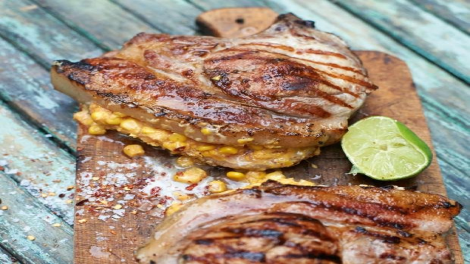 Пълнените пържоли се пекат първо на много гореща скара по 2 мин. от всяка страна.