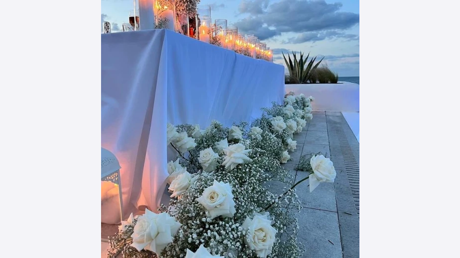 На снимките виждаме арката с бели рози и масата, на която двойката се е подписала. Те са поставени на фона на красивата морска шир. На друг кадър Мика ни показва масата на младоженците, пищно украсена с бели рози и свещи. Виждаме и табелката с името на булката „Михаела Стоичкова Трайкова“. Засега тя не публикува снимки, от които да видим сватбената й рокля./Източник:Lupa.bg