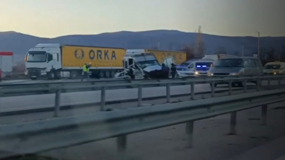 Пак катастрофа на пътя Перник - София: Пожарна и линейка на Черния кос