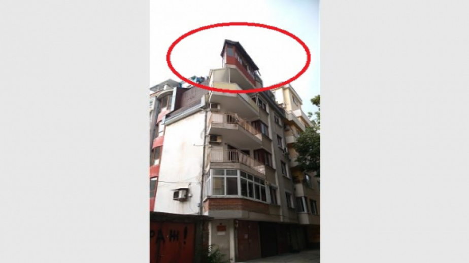 Буден пловдивчанин засне уникалното явление, вероятно незаконно надстрояване, в квартал "Кършияка" в града.На снимките се вижда, че плочата-козирка над тераса на последния етаж на нова кооперация е остъклена и превърната в нещо като триъгълна стаичка.
