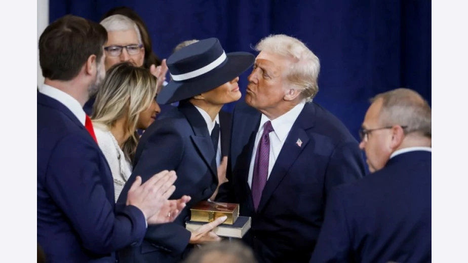 Шапката, която скриваше погледа на първата дама на САЩ Мелания Тръмп по време на инаугурацията на съпруга ѝ, се превърна в една от най-обсъжданите теми за изминалите 24 часа. Особено любопитни са кадрите, на които се вижда как Доналд Тръмп опитва да целуне половинката си, но изисканият ѝ аксесоар го "спира". Всички се чудят какво стои зад решението на Мелания Тръмп да не показва очите си по време на церемонията.