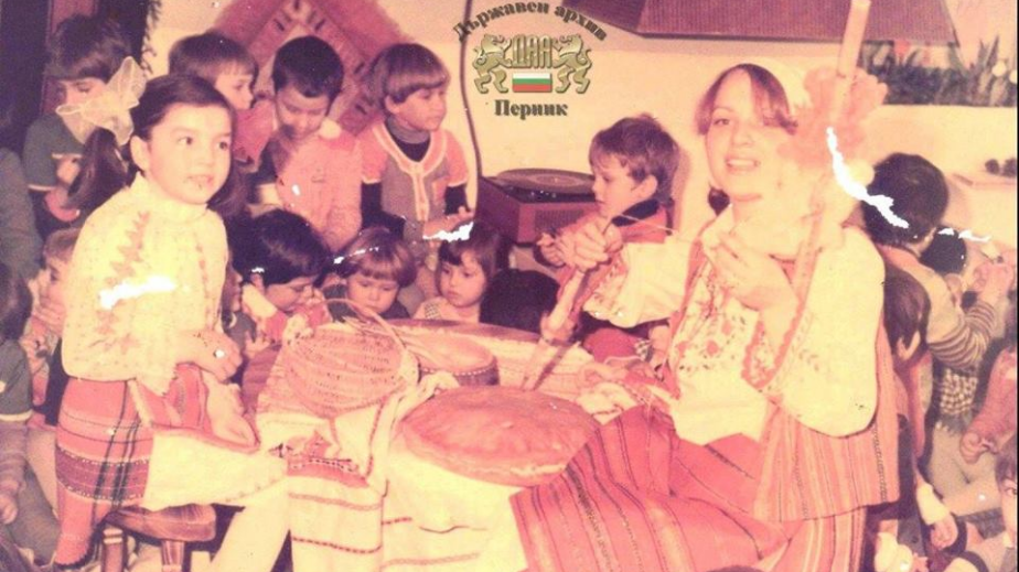 Държавният архив в Перник разпространи уникални снимки на празника от комунистическо време. На фотосите се вижда как деца от детската градина в Трън посрещат Дядо мраз. Събитието е заснето през 1985 г.
