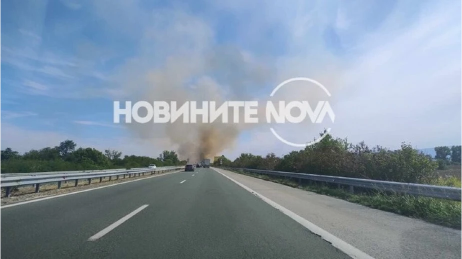 Пожар затрудни движението на магистрала „Тракия” край Пазарджик, съобщиха за NOVA от ОДМВР. Огънят вече е изгасен.