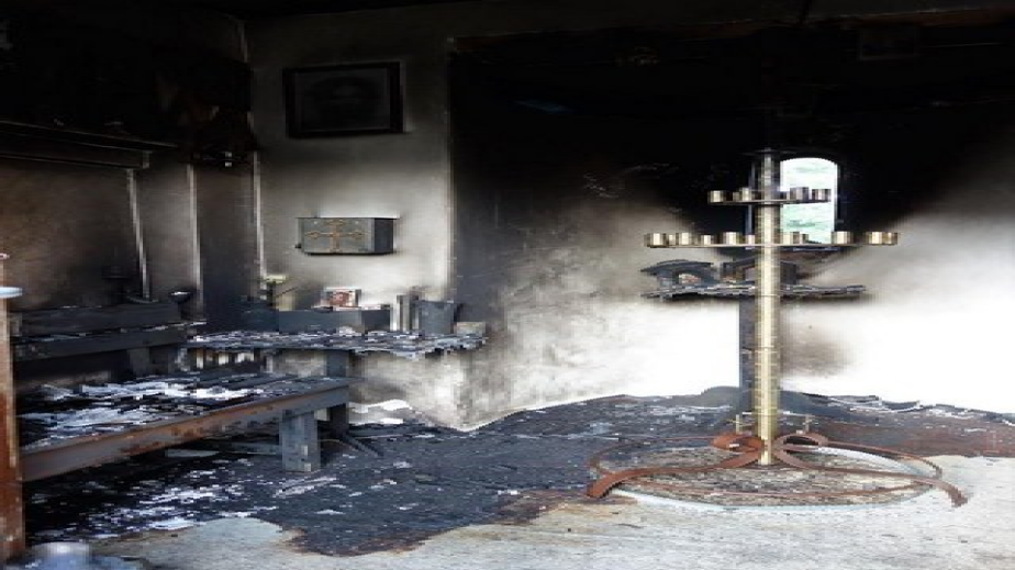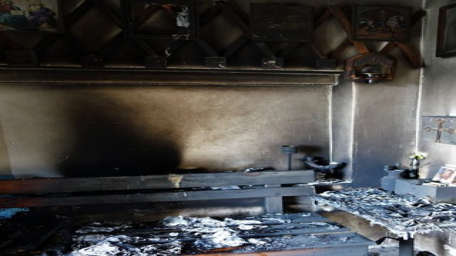 Неверници разбили вратата на храма. Пожарът е избухнал във вътрешността му като е изпепелил дървени пейки и черги, опишени са икони.