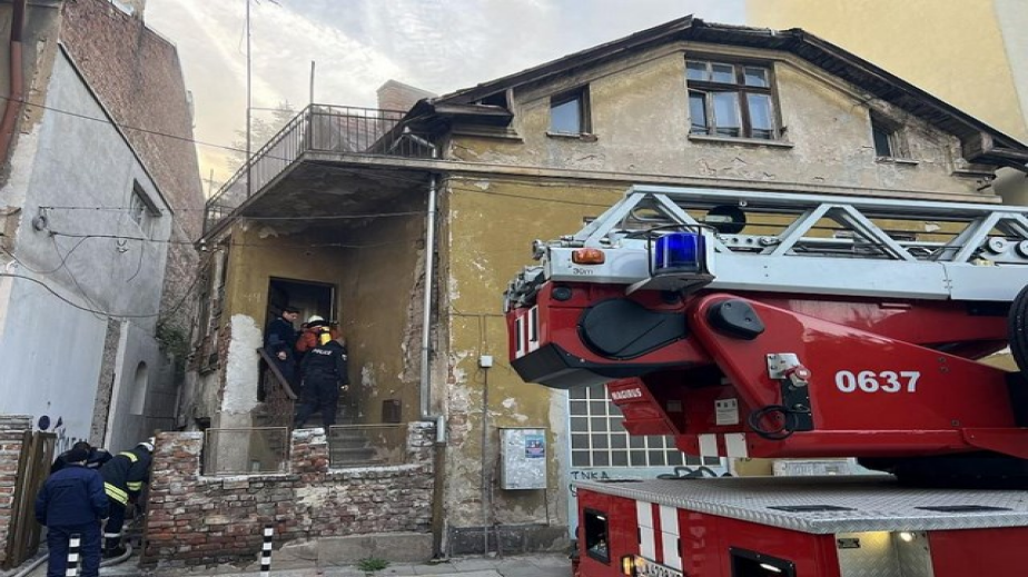 Огънят е възникнал в триетажна къща, която по данни на полицията е необитаема, а на партера има търговски обект.