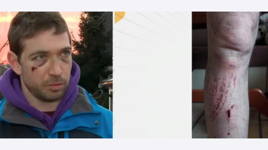 Около 18 ч. в злополучния ден те отиват до куриерска фирма, за да приберат своя пратка. ''Минавайки през кръстовището, което е доста добре осветено, се опитахме да пресечем пред кола, която беше на известно разстояние от нас, но се движеше много бавно. Изведнъж тя ускори и мина много близо, а аз изразих недоволството си, като ударих колата с длан. Шофьорката свали прозореца и каза, че на мястото няма пешеходна пътека, разменихме си реплики. Продължихме по пътя и връщайки се, след като си взехме пратката, кола излетя към нас, а шофьорът се спусна с викове. Нанесе ми побой с юмруци и ритници и ме попита "ти какви коли ще риташ". Казваше ми "ей тука ще те убия, ще те приключа, това ти е краят". Каза ни, че жена му е бременна, а моята каза, че също е. Запомних номера, успях и да снимам, подадохме сигнал в полицията, имам и медицинско", спомня си той.