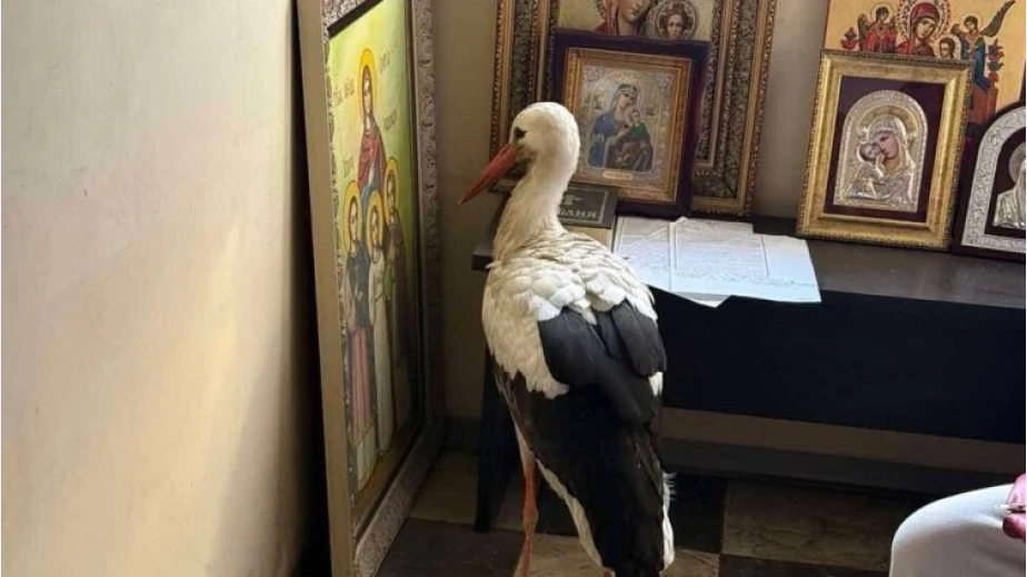 Премръзнал щъркел се спаси от студа, като намери подслон в параклиса на бургаския квартал "Ветрен".