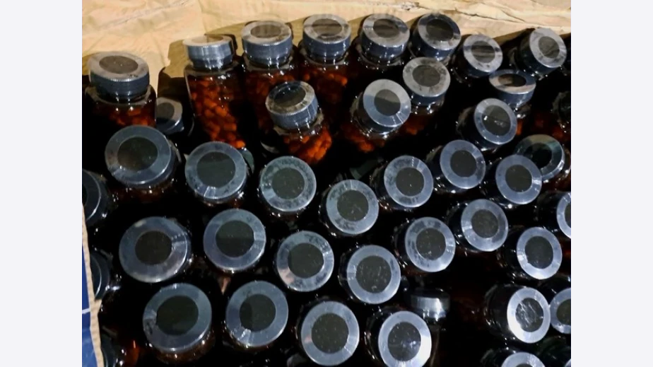 Предприети са претърсвания на адреси и автомобили. Намерени са голямо количество кафяви шишета с капсули, кашони с надписи с имена на добавки във вид на бяло прахообразно вещество, кутии с неидентифициран прах, пликове с бели таблетки, множество различни по вид празни шишета, капачки и самозалепващи се етикети, пресовъчна машина с принадлежности към нея, електронна везна, мобилни телефони, компютри, златни и сребърни кюлчета, оръжия и боеприпаси. Иззети са и полицейска палка, бронежилетка с надпис „Police“ и светлоотразителна жилетка с надпис „Пътна полиция“.