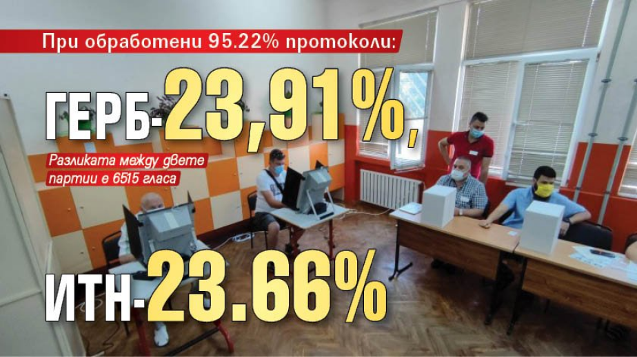 Това означава, че разликата между ГЕРБ и ИТН е 6515 гласа.
