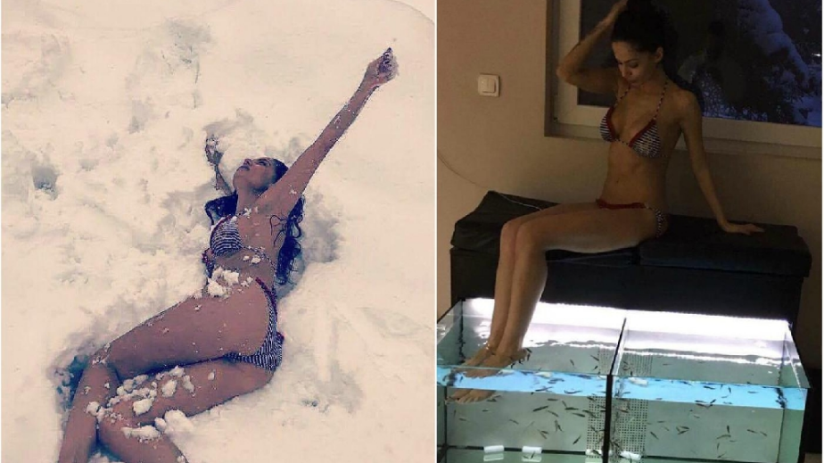 Певицата изкара кратка ваканция е един от зимните ни курорти, където редуваше плацикането в джакузи с въргаляне по бански в снега.