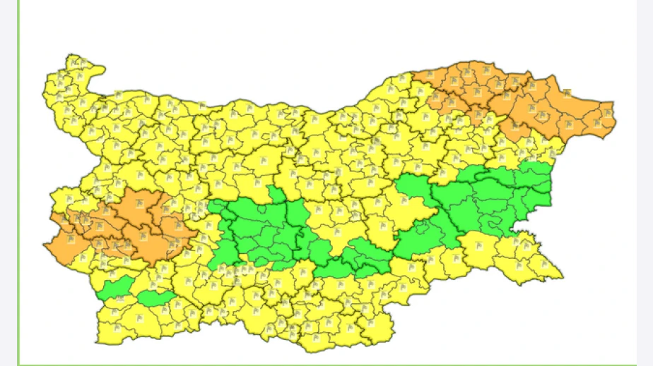 Оранжев код за силен вятър е обявен и за областите София, Кюстендил, Добрич, Силистра, Разград и Варна. Във Видин, Монтана, Враца, Благоевград, Плевен, Велико Търново, Ямбол, Сливен, Кърджали, Стара Загора, Габрово и Пловдив предупредителния код е жълт.