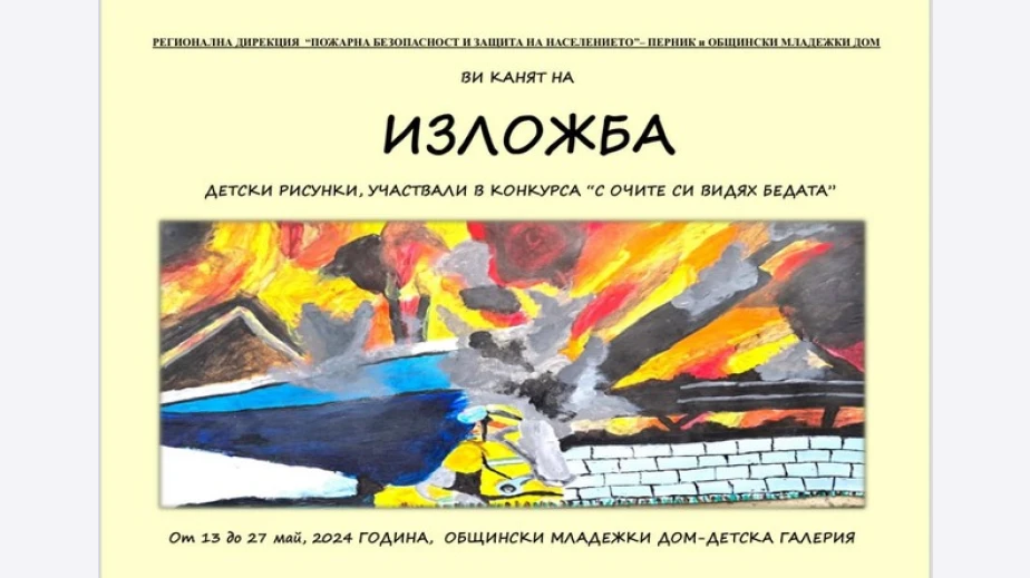 През месец април в Регионална дирекция „Пожарна безопасност и защита на населението“ – Перник беше проведен областния конкурс за детска рисунка “С ОЧИТЕ СИ ВИДЯХ БЕДАТА” – ПЕРНИК 2024 г. В него взеха участие 33 рисунки на деца от общообразователни училища и центрове за подкрепа на личностно развитие в системата на училищното образование. След подбор и оценка, конкурсната комисия класира на най-добрите рисунки в отделните възрастови групи, както следва: