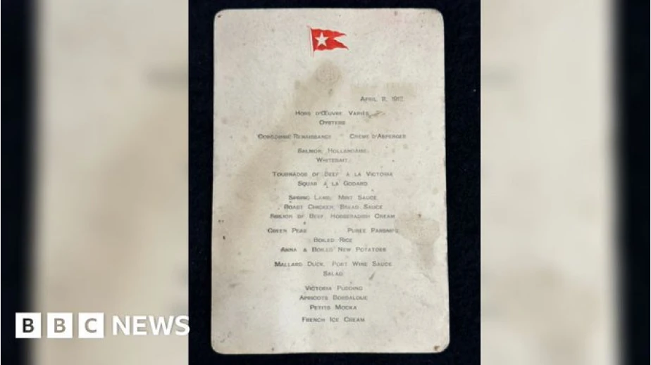 Първокласно меню за вечеря от злополучното първо пътуване на Титаник, предлагащо стриди, говеждо и зеленоглава патица, беше продадено за £84 000 ($103 000), съобщи аукционната къща в Обединеното кралство, отговорна за продажбата му в на 12 ноември.