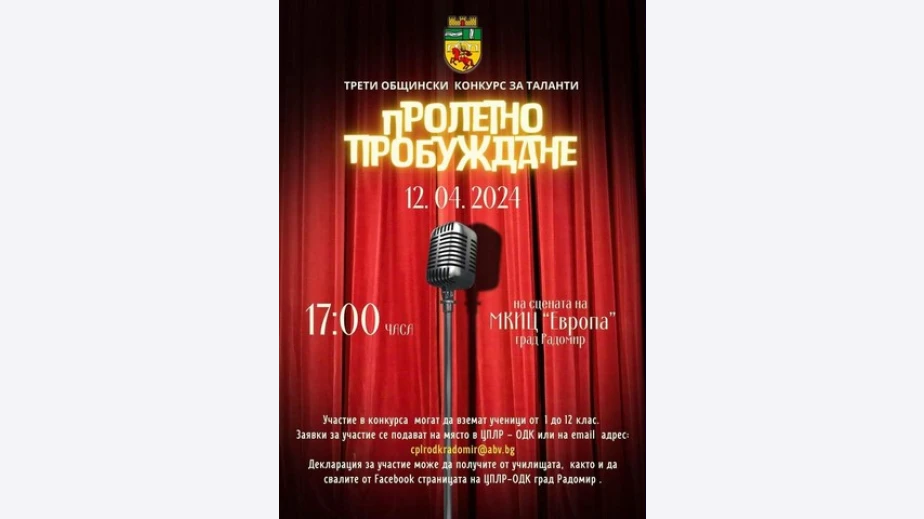 Трети общински конкурс „Пролетно пробуждане“ ще се проведе на 12 април на сцената в Младежкия културно-информационен център „Европа“ в Радомир, съобщиха от общината.