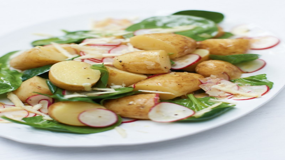 Репичките се нарязват на тънки кръгчета и заедно с листенцата спанак се добавят към картофите.
