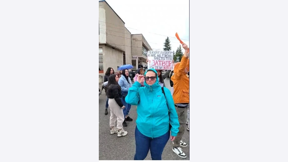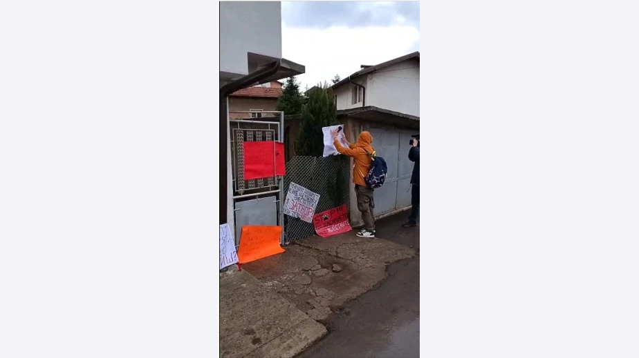 Тълпата хвърляше плакати с различни надписи в двора на къщата на семейството на задържаната Габриела Сашова.