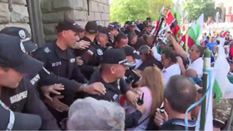 Протестиращите се опитват да влязат в сградата на парламента, където се провежда първото заседание от есенната сесия, но полицията не ги допуска.