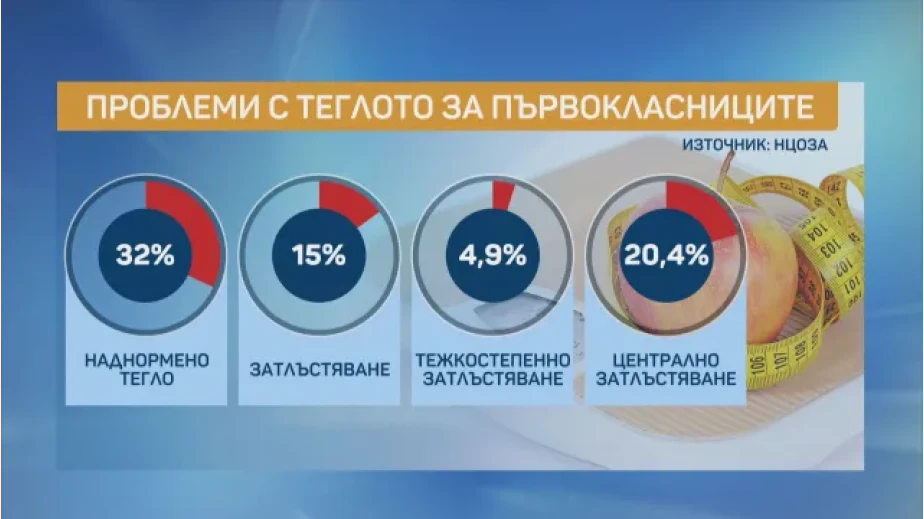Данни от проучване показват, че 32% от децата в първи клас са с наднормено тегло. 15% от тях са със затлъстяване, като 4,9% от тях с тежко затлъстяване.