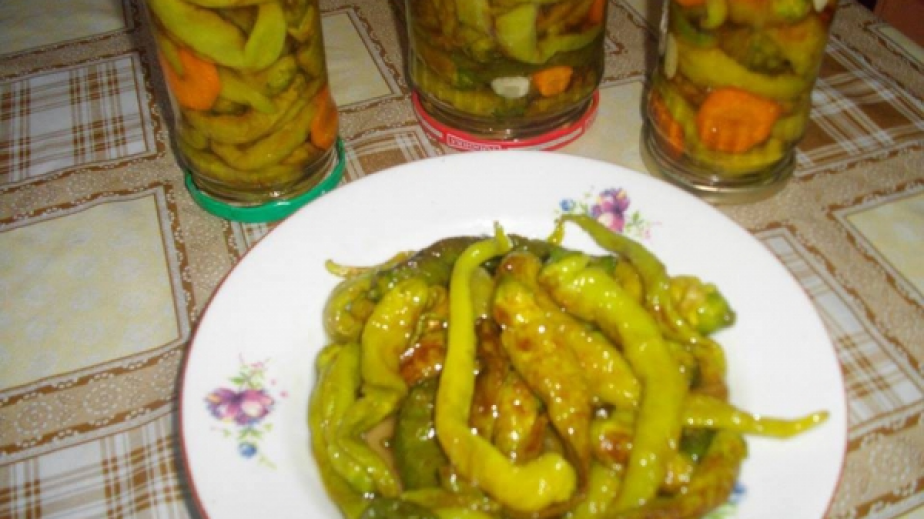 Аз наредих чушките в бурканчета, напълних с топлата марината, затворих с капачка и обърнах с дъното нагоре.
