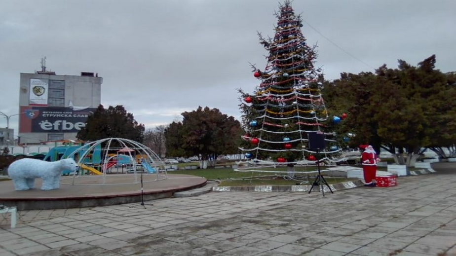 Радомир грейна коледно тази вечер. Кметът Пламен Алексиев запали светлинките на елхата. Тази година бе украсено живо дръвче.