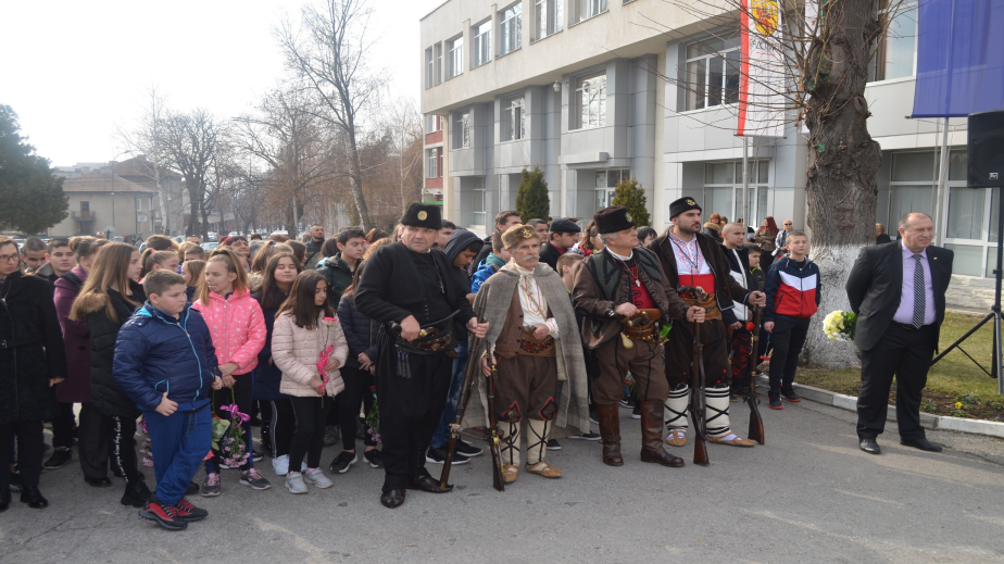 Стотици жители и гости на Радомир се събраха на пл. "Свобода" пред паметника на Васил Левски в града, в знак на почит и признателност към Апостола.