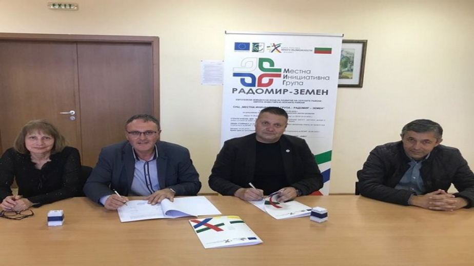„Подкрепа за заетост на безработни и неактивни лица в Община Радомир“ е наименованието на проектното предложение, по което Община Радомир и СНЦ „МИГ Радомир-Земен“ подписаха договор за предоставяне на безвъзмездна финансова помощ по Оперативна програма „Развитие на човешките ресурси” 2014-2020. На официалната церемония присъстваха екипите на сдружението и общината, работил по проекта. Изпълнителният директор на СНЦ „МИГ Радомир-Земен“ Радослав Йорданов и господин Димитър Димитров – заместник кмет на Община Радомир положиха подписи на тристранният договор .