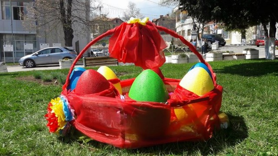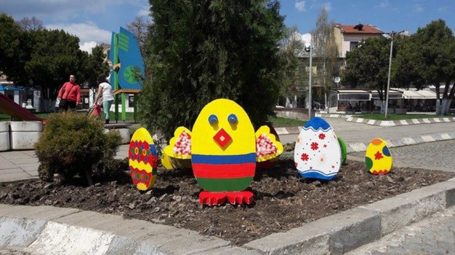 Великденската украса е подарък от общинската управа на града. Шарените яйца и закачливите фигури се приемат изключително радушно от радомирци.
