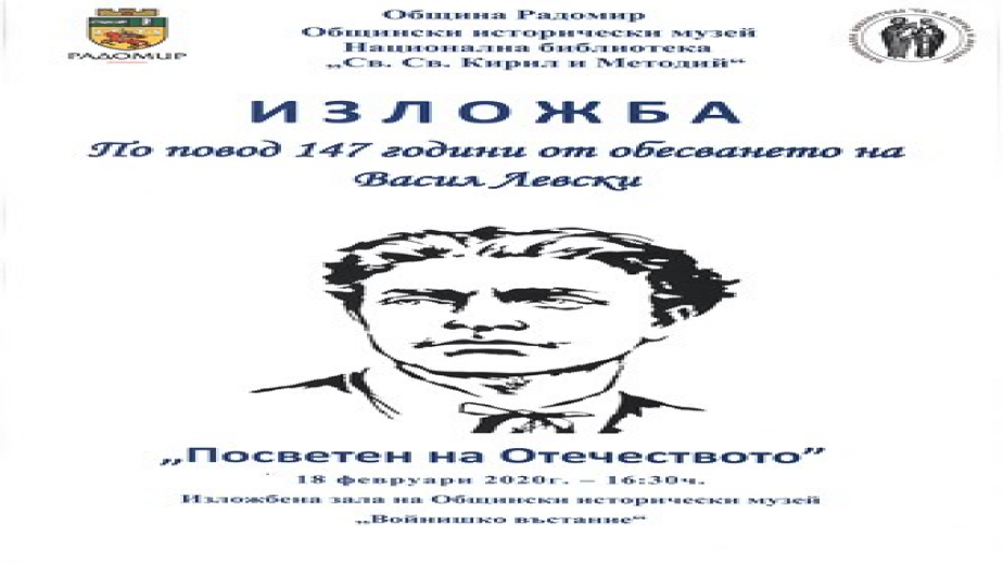Официално ще почетат Апостола на свободата Васил Левски в Радомир. За 147-та годишнина от гибелта му, в града ще пристигне специална пътуваща експозиция на Национална библиотека "Св. св. Кирил и Методий". Ценни библиографски документи и снимки, свидетелстващи за делото на Васил Левски, ще бъдат показани за първи път в Радомир.