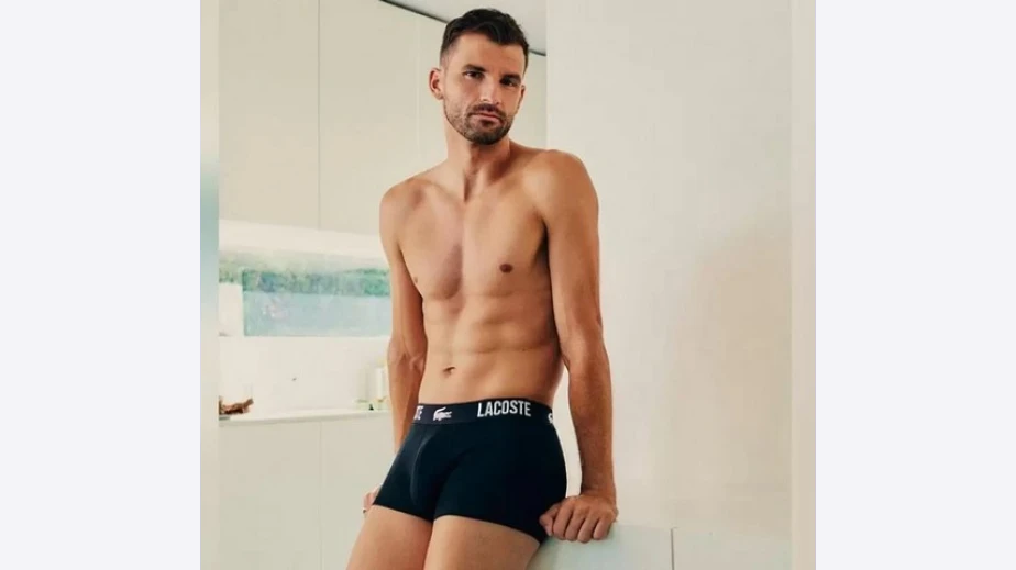 Григор Димитров вече рекламира и бельо! Суперзвездата на тениса е рекламно лице на "Лакост" от месец май миналата година и първоначално презентираше спортните екипи на прочутата френска марка, прочула се с емблемата си на крокодил. Преди дни обаче изтекоха и фотоси на Гришо по боксекри.