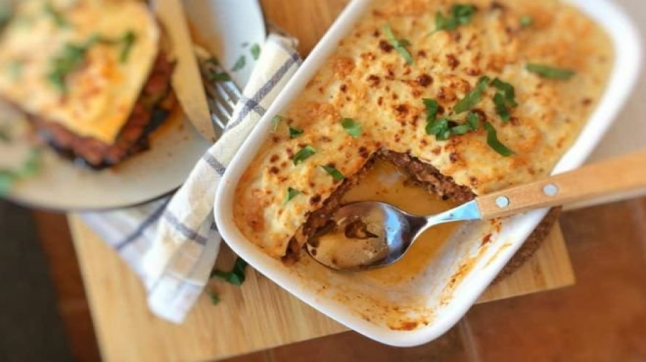 Поставете тавата в предварително загрята фурна, а отгоре покрийте с фолио или капак. Преди края на печенето махнете фолиото и оставете мусаката да се допече, докато хване приятна коричка.