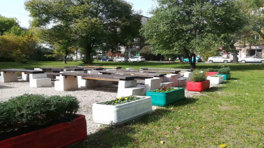 Кметството в пернишкия квартал "Изток" и доброволци боядисаха класната стая на открито в района. Дни преди това пейките бяха отремонтирани( Поставени са и цветя.
