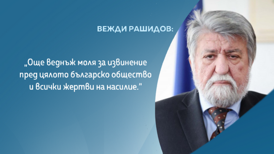 "Извинявам се за изречените от мен думи днес по време на почивката на пленарното заседание. Давам си сметка, че използваният от мен език е недопустим, особено в настоящия дебат и момент. Още веднъж моля за извинение пред цялото българско общество и всички жертви на насилие", казва Рашидов.