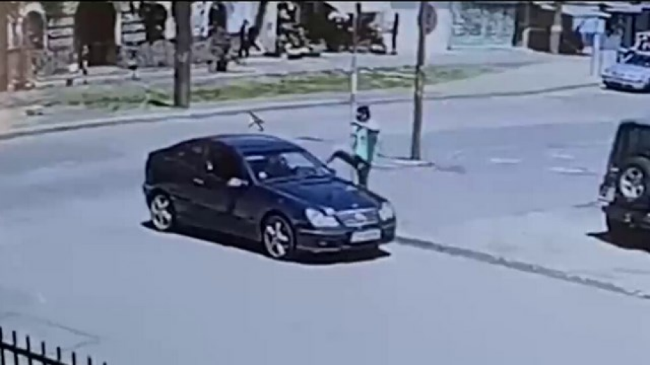 Мъжът прави обратен завой и минава през велоалея. В последствие става ясно, че при тази маневра шофьорът е щял да прегази на косъм друга жена и децата й.