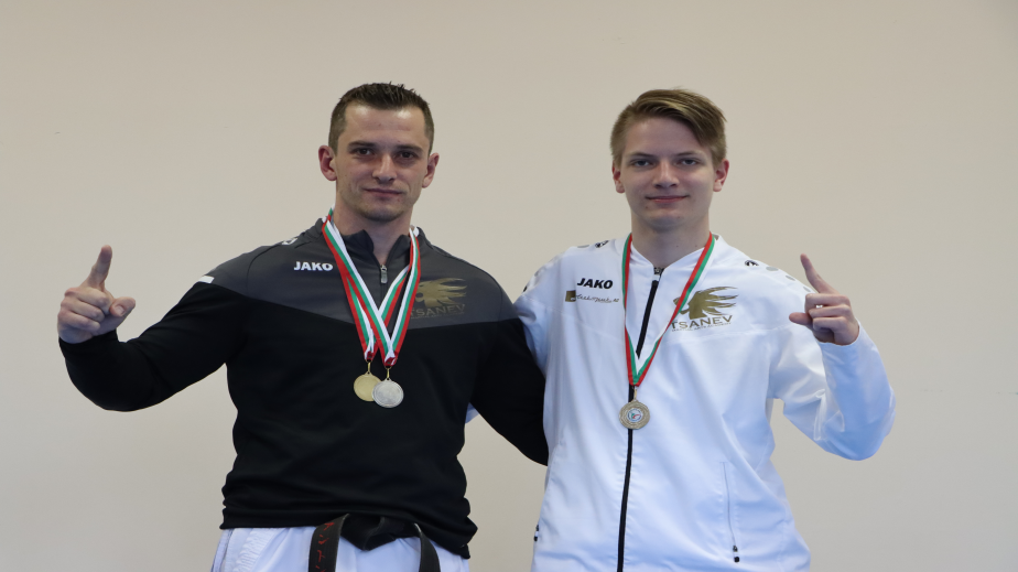 Антони Дамянов, учител по физическо възпитание и спорт и треньор на КК „Цанев" взе златен медал в категория Кумите отборно и сребро в Ката отборно