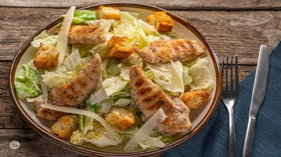 Сложете в чиния, отгоре поставете част от филенцата, поръсете с пармезан и добавете крутони. Сервирайте с чаша бяло вино.