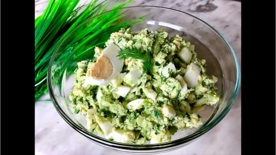 Яйцата и авокадото се обелват и нарязват на кубчета. Лукът се обелва, почиства и нарязва на дребно. Киселото мляко, горчицата, лимоновият сок и подправките се смесват, за да се получи дресинг. В голяма купа се комбинират всички съставки, добавя се и дресингът. След като се разбърка добре, салатата се оставя да престои малко и след това може да се сервира върху листа от маруля. /Рецепта на roditel.bg