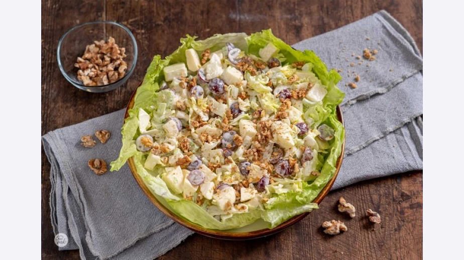 Салата от печени чушки и орехи върху краставица