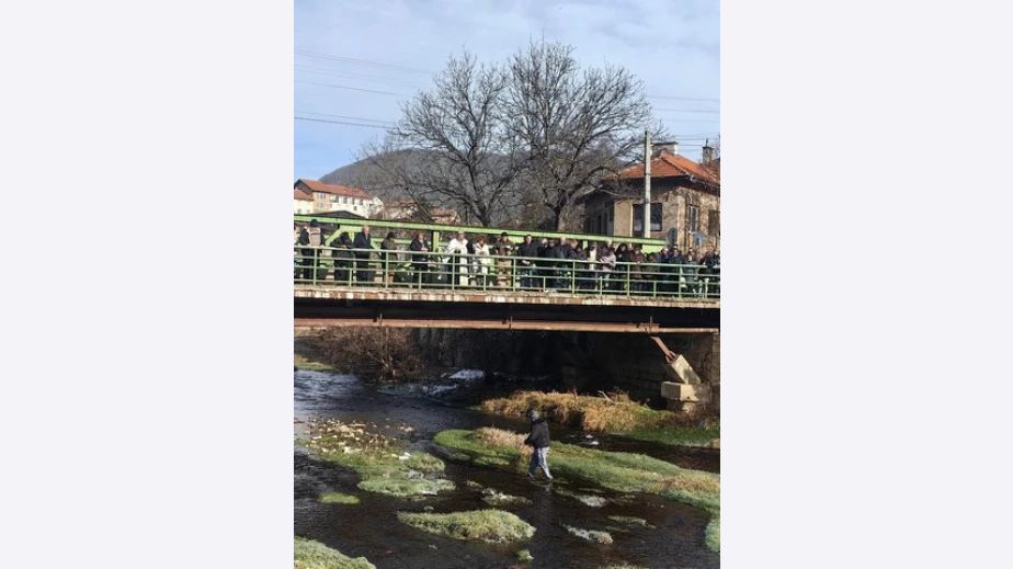 Кръстът бе хвърлен от моста на улица „Гочо Гопин“ в пограничния град от отец Игнатий. След като станало ясно, че няма желаещи да влязат в студената вода, Златков смело нагазил и извадил Светинята.