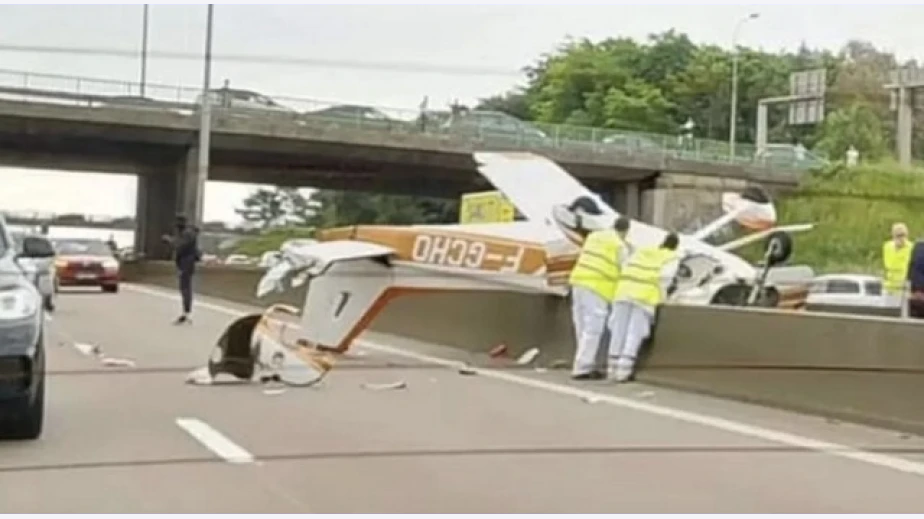При катастрофата на самолета на магистрала А4 в Ноазиел, която изглежда е била причинена от удар на самолета в електрически кабел, не е засегнат нито един автомобил. Пътят е блокиран и в двете посоки. /Източник: Новини.бг