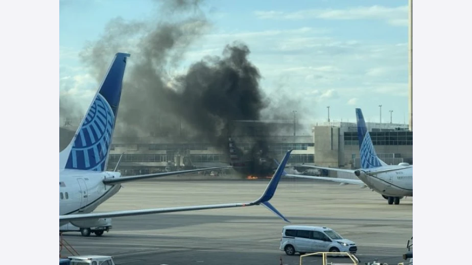 Самолет на American Airlines се запали, след като кацна на международното летище в Денвър, Колорадо, показват драматични снимки в социалните мрежи, предаде АФП.