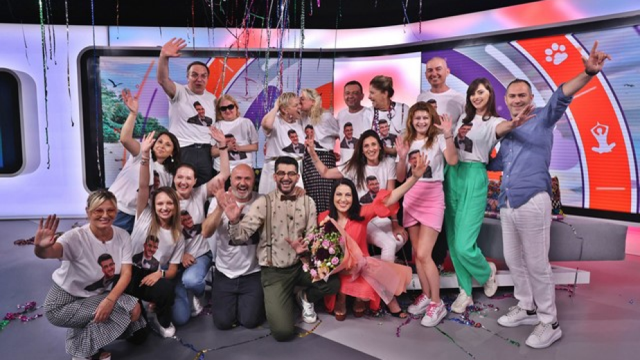 Актрисата Катерина Евро го изненада направо в студиото с баница и букет цветя за партньорката му Деси и сто пъти повтори, че единственият й наследник не е стиснат. Бившата му жена Таня, се включи във видео с потвърждението, че откакто не са заедно са още по-добри приятели: