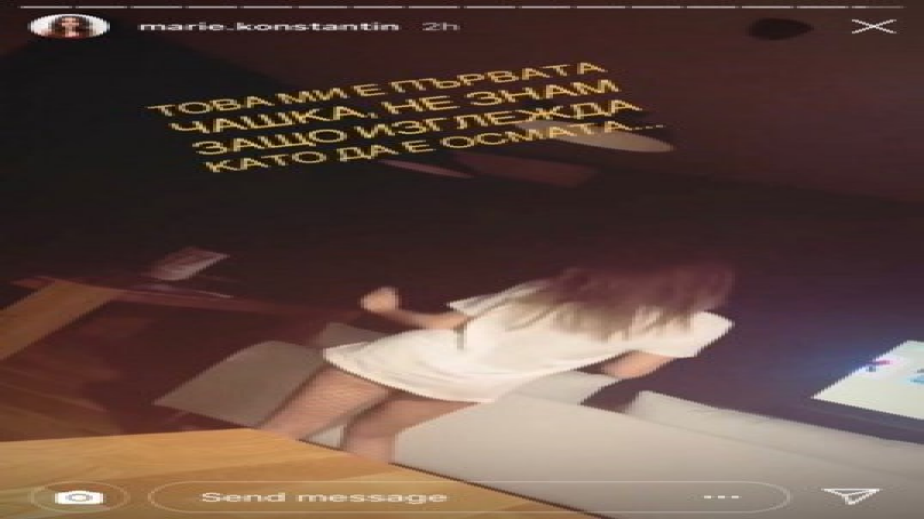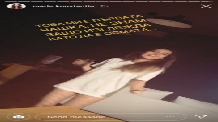 Щерката на Гала се забавлява и не пропуска да се похвали с щастието си на всичките си приятели и последователи в социалната мрежа. Чаровната Мари пусна палаво стори в профила си в "Инстаграм". На него дъщерята на водещата на "На кафе" и интернет звезда от уеб сериал е пременена в бяла тениска и мрежест и палав чорапогащник. Тя се поклаща чаровно, а в ръката си пие чаша пълна с високоградусова напитка. Не става ясно какъв точно алкохол консумира Мари, но пък тя бърза да уточни колко точно от него е изпила.