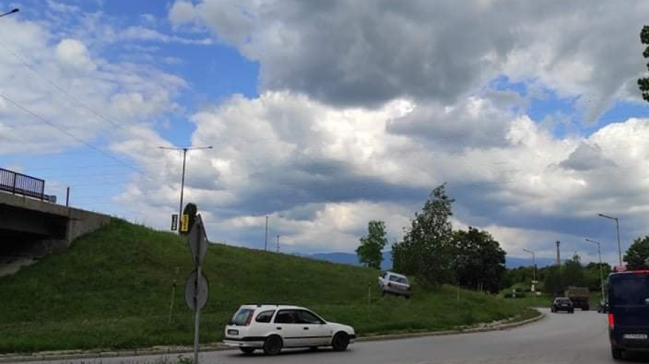 Снимка на шофьор, който минава през тревните площи на кръговото на „Хумни дол“ изуми перничани. Инцидентът станал вчера.