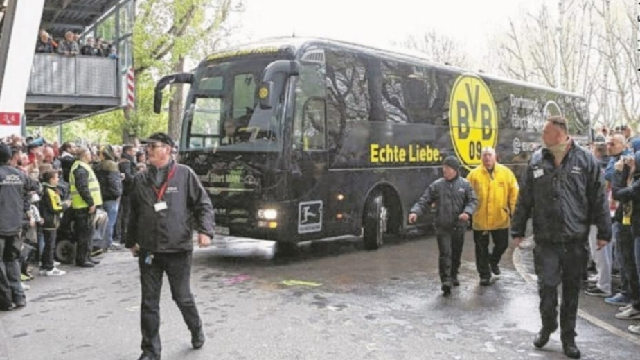 Официалната страница на клуба в социалната мрежа Twitter съобщи, че е имало неприятен случай с возилото на отбора, при тръгването му към стадиона, а един човек е пострадал и е откаран в болница. Раненият е испанският футболист на вестфалци Марк Бартра, който е болница, но няма подробности за състоянието му, твърди „Билд”.