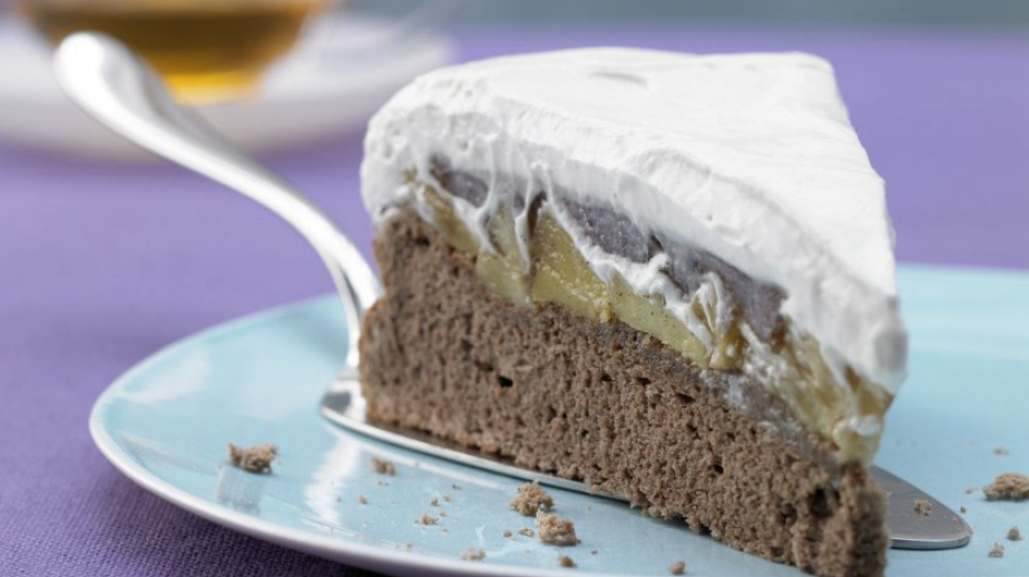 Добавят се към жълтъците брашното, нишестето и какаото и се разбърква. Прибавят се с разбъркване чрез повдигане и белтъците.