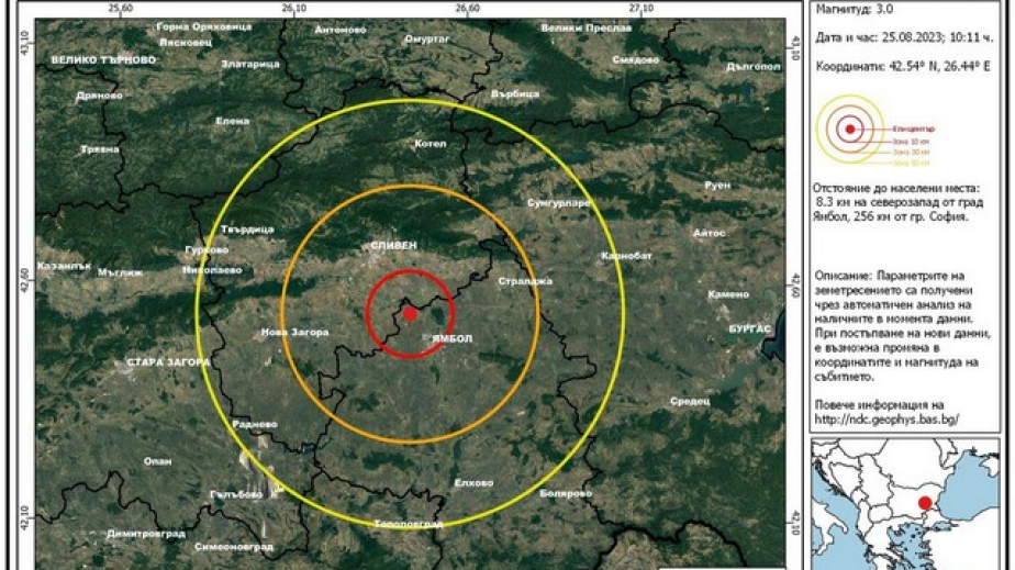 Серия от трусове разлюляха Ямболско тази сутрин. Регистрирано е земетресение с магнитуд 3.0 по Рихтер в района на град Ямбол, сочат данните на Националния Сеизмологичен Център към НИГГГ-БАН.