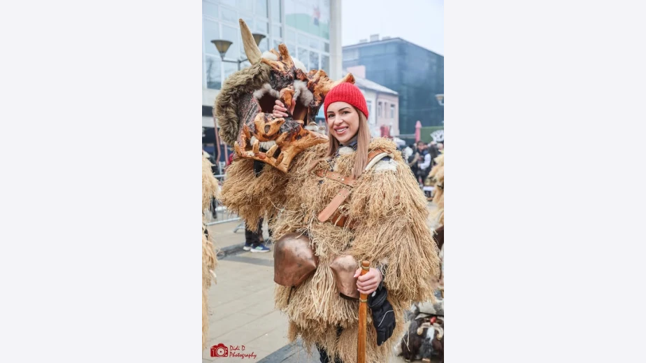 Красива перничанка се окичи със Златна маска от тазгодишния Международен фестивал на маскарадни игри „Сурва“ в Перник. Карина Мирчева бе част от сурвакарската група на село Банище община Брезник, които спечелиха голямата награда на фестивала в миньорския град.